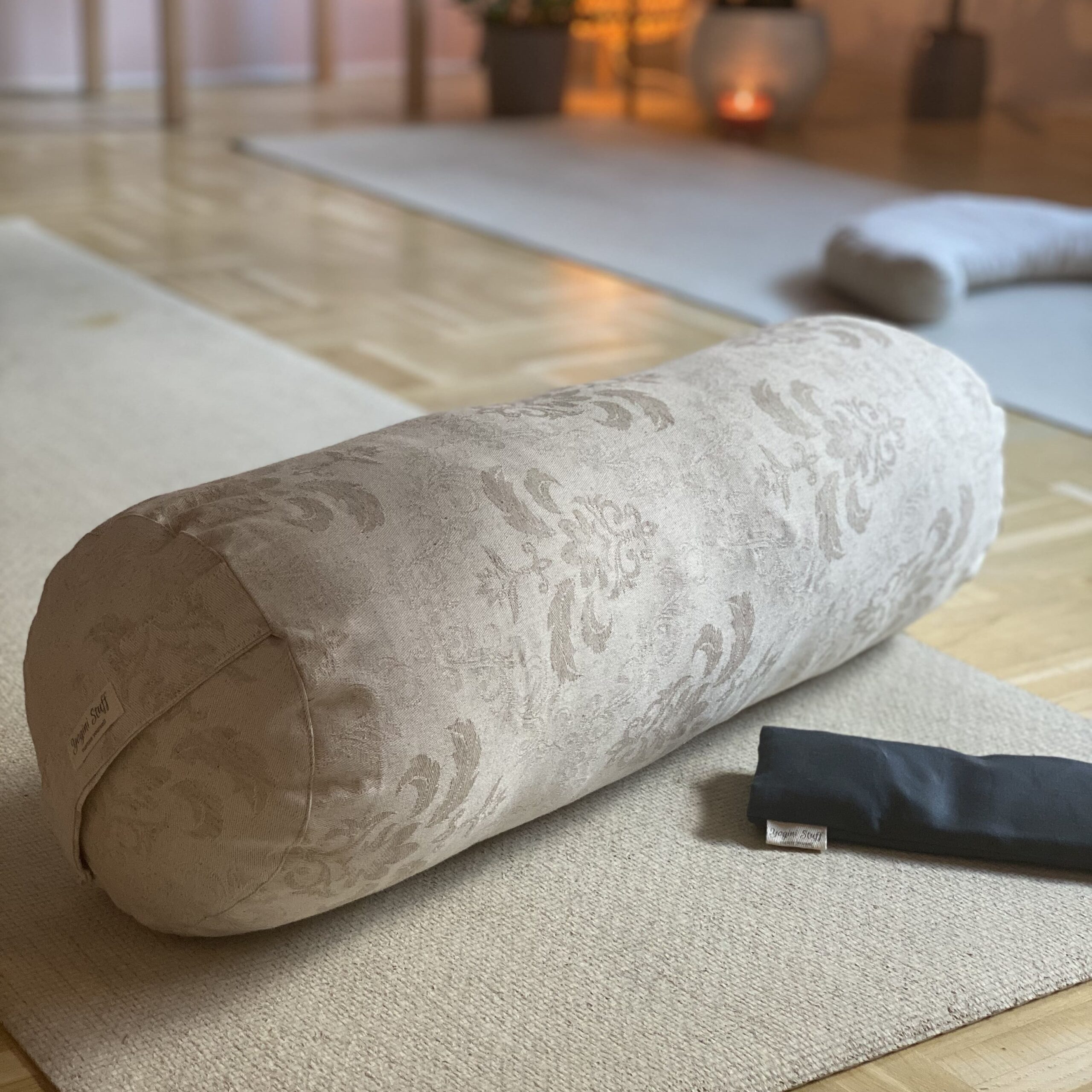 Okugli Bolster je duguljasti jastuk koji podržava čitavu dužinu kičmenog stuba kada se leži na njemu, otvara grudni koš i ujedno opušta ramena. Sve u zavisnosti od toga koji položaj zauzmete. Kada je ispod nogu, rasterećuje donja ledja, i pošto je malo blažeg punjenja nego Pravougaoni Bolster, prija osobama koje se malo teže otvaraju i potrebno im je vreme kako bi se potpuno opustili.