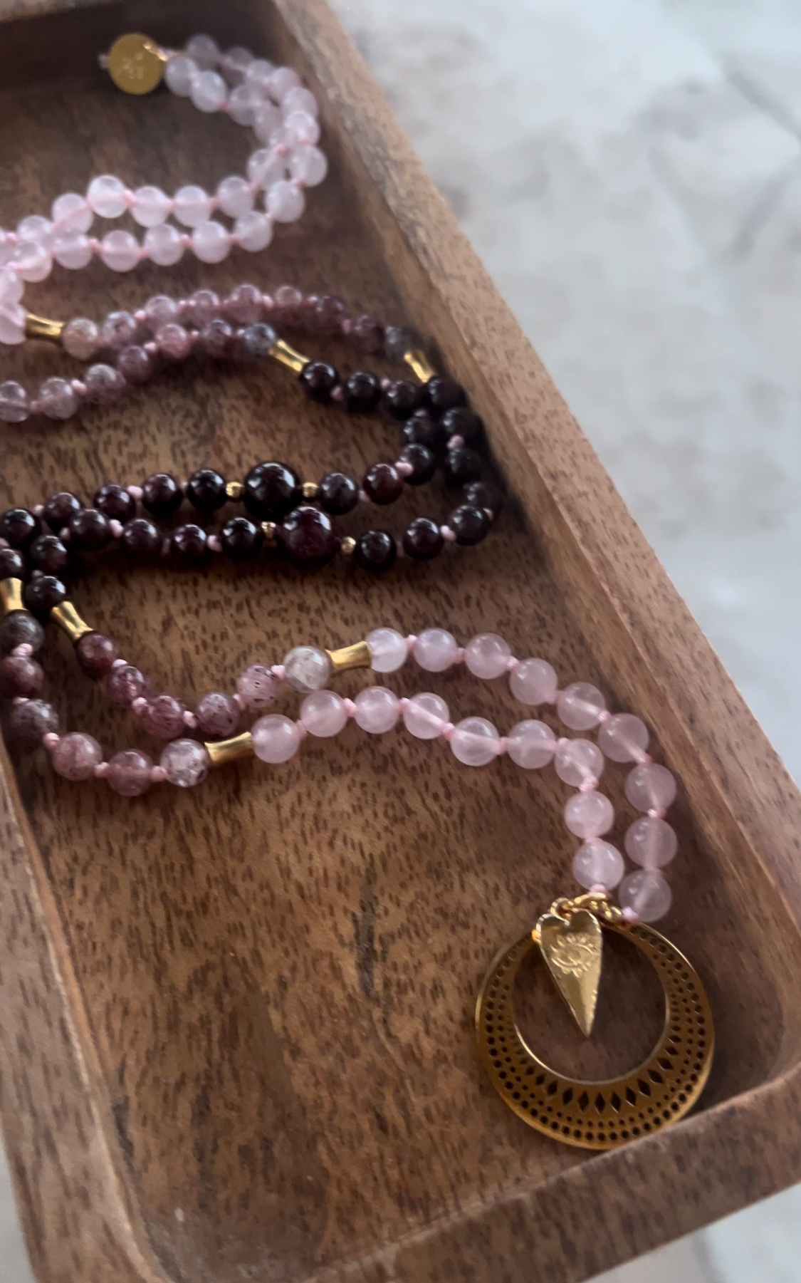Strawberry kvarc, donosi bezuslovnu ljubav, uvećava zahvalnost i velikodušnost i tako nas vraća na pravi put. Uz granat, kao kamen uspeha, strasti i životne energije, podiže nam samopouzdanje i veru u svoje sposobnosti, a roze kvarc uz svoju nežnost i otvorenost spaja i provodi ova dva.